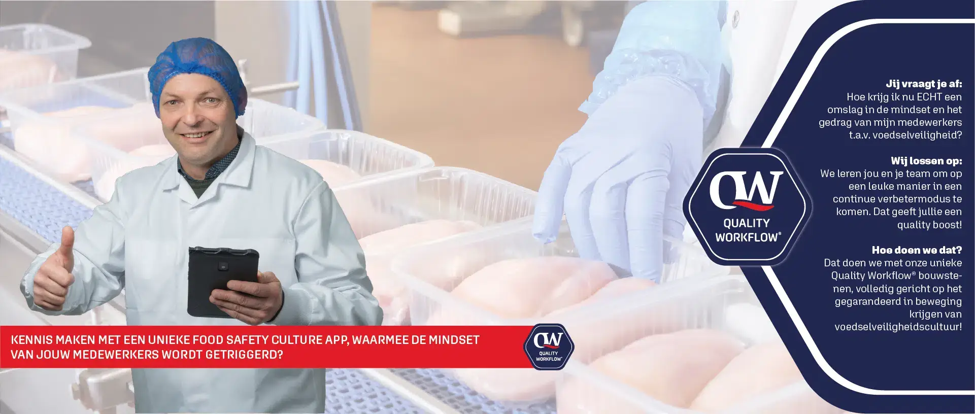 Dat doen we met onze unieke Quality Workflow® bouwstenen, volledig gericht op het gegarandeerd in bewegingkrijgen van voedselveiligheidscultuur!